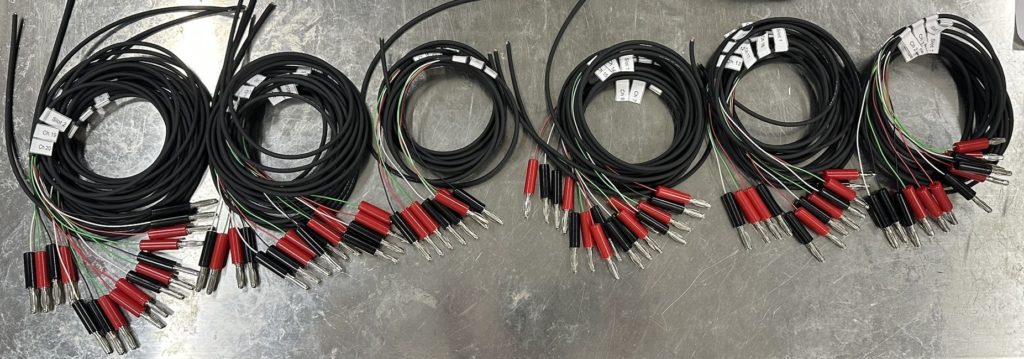 ケーブルを切り分けて、バナナプラグのはんだ付けまで完了