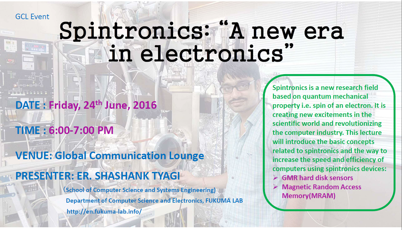 Prof. Fukuma will give a talk on Electric-field-control of magnetoanisotropy in in-plane magnetized CoFeB layer.